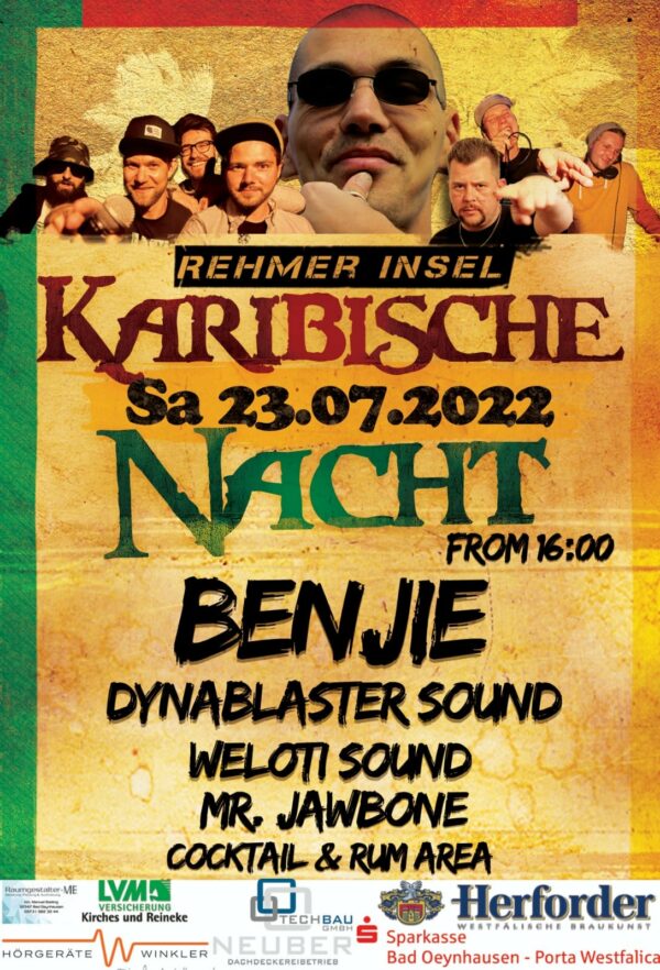 Am 23.07.22 ab 16 Uhr geht es auf Rehmer Insel in Bad Oeynhausen wieder karibisch zu. RW Rehme und Weloti Sound laden zur Karibischen Nacht ein. Vor Ort erwartet euch eine Chillarea, eine Cocktailbar, eine Rumbar und natürlich ein klassisches...