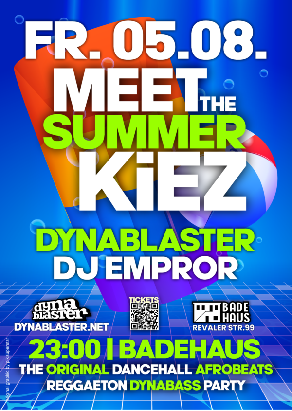 THE ORIGINAL MEET THE KIEZ Freitag 05.08.22 im BADEHAUS, Berlin DANCEHALL / AFROBEATS / CARIBBEAN BASS/ RAGGAETON Dynablaster dreht durch im Badehaus, ting called Meet the Kiez. Jeden ersten Freitag läd Dynablaster lokale DJ´s im Bereich Dancehall, Raggaeton, Afrobeats und...