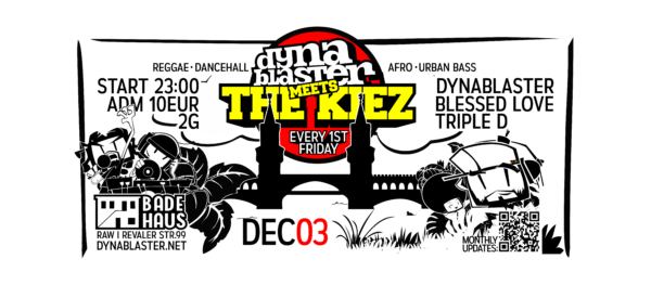 DYNABLASTER MEETS THE KIEZ EVERY FIRST FRIDAY TO ALL DANCEHALL/ AFROBEATS / SOCA & REGGAE Fans on DEZ 03TH WE ROCK THE KIEZ! The lights are low, the room is packed. Thick, musty clouds of perspiration hang in the air...